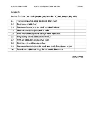 Dunia muzik tahun 2 peperiksaan akhir tahun sk skarok 2017 bahagian a 40 markah 1.